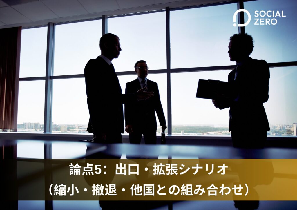 論点5:出口・拡張シナリオ(縮小・撤退・他国との組み合わせ)