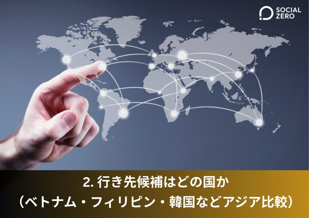 ベトナム・フィリピン・韓国等を含めた海外進出の現実的な選択肢と次の一手をご提案します。